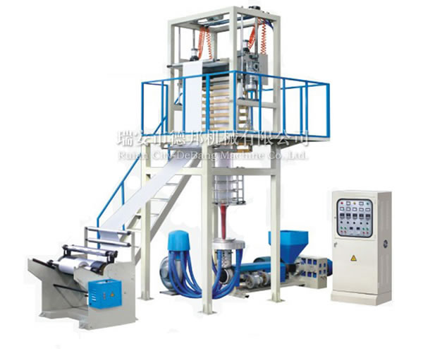 Its extruder, cylinder and screw rods are made of quality alloy steel that have been nitrized and processed in a precision way. Hence it is sound in hardness, durable in corrosion resistance. The specially-designed screw is of sound quality in plasticizing, which helps increase the production capacity. It is applied to blowing the plastic films like low density polytene (LDPE), high density polytene(HDPE) and linear low density polytene (LLDPE). It is widely applied to producing the packing bags for foodstuff, clothing, rubbish bag and vest ones.